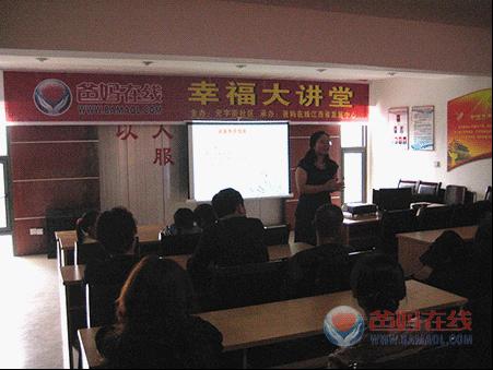 2012年10月3日9:00,由元字街社区和爸妈在线江西发展中心共同主办的“与孩子同行”主题讲座在元字街社区会议室如期开展,参与者为元字街社区居民,此次讲座由何静丽老师主持。