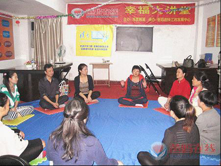 2012年10月14日晚上7点半,爸妈在线心理咨询江西省发展中心组织的“静心营”第三期在海星大楼4楼江西爸妈在线办公地顺利开展,参与者均为爸妈在线家人及社会各界心理学爱好者,此次活动由邱奉萍老师主持。