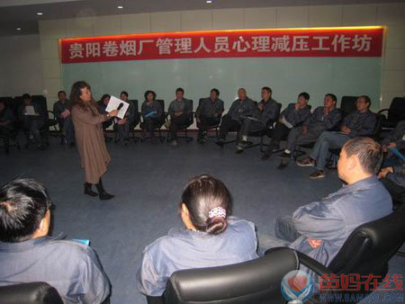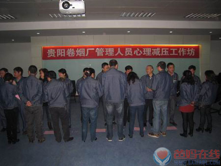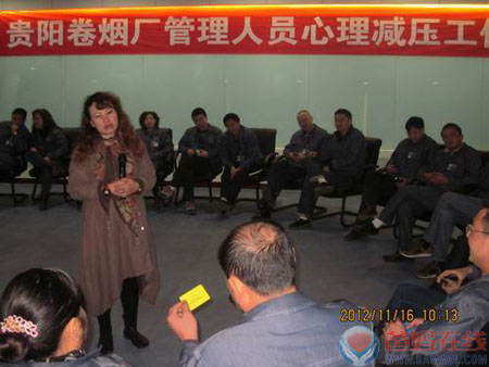 2012年11月16日,应有四千名员工的贵阳卷烟厂邀请,爸妈在线贵州省心理发展中心主任、心理剧学院院长杨丽春来到烟厂,为五十名中层干部进行了首场心理减压。贵州省中心督委胡铭莉随同。
