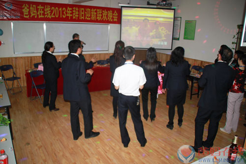 1月28日下午,距离农历新年还只有不到两个星期的时间,爸妈在线总部培训室却是春意盎然、欢歌笑语。深圳市爸妈在线心理咨询股份有限公司全体员工在这里盛情举办2013年辞旧迎新联欢晚会。本次联欢晚会由爸妈在线工会主席赵晓达主持。晚会上,爸妈在线全体员工齐聚一堂,其乐融融,大家分享着过去一年的成功喜悦,憧憬着对新一年的美好愿景。