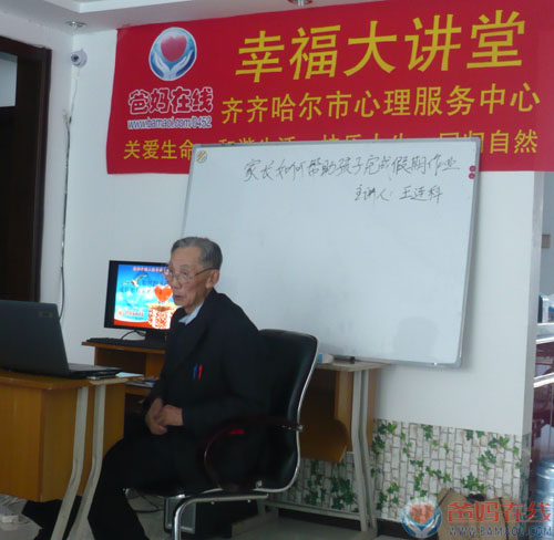 2013年1月26日下午14时,在爸妈在线齐齐哈尔市心理服务中心,举办了爸妈幸福大讲堂——父母如何帮助孩子完成假期作业。
