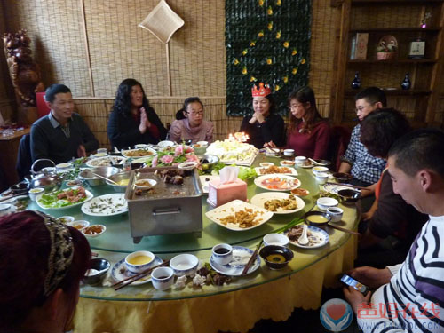 中午,家人们来到位于城南充满乡村气息的农家食府,拥有千年历史的郑道昭石碑——云峰山脚下,这里仿佛就是多年前生养自己的家,厅内春意盎然,草帘墙壁、粗糙的木质座椅、纸糊的天棚,到处都是老家熟悉的东西,让人自然地感受到轻松、真实、亲切、和谐,与我们爸妈在线的宗旨、心理工作者团体的风格相契合——关爱生命、和谐生活、快乐人生、回归自然。