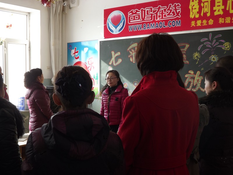 首先,由咨询中心薛主任向家人及饶河心理爱好者介绍了爸妈在线总部的创立及发展状况,并将总部改制后的新精神传递给大家,同时也将饶河心理咨询中心职责及未来的发展方向做了详细的阐述,同时薛主任讲述了她走上心理咨询师之路及加入爸妈在线的经历,并希望大家共同努力,秉承“以人为本,务实诚信、服务至上、开拓创新”的精神,让饶河人民认识到心理健康的重要性,使民众关注身心健康,提升生命品质,为人类心灵和谐服务。