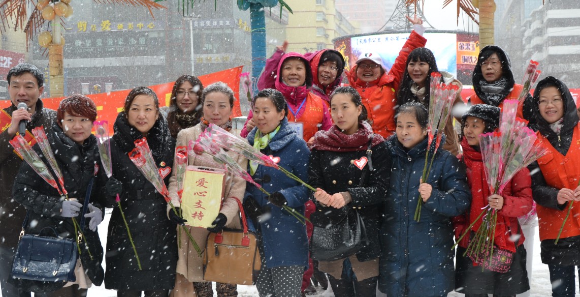 爸妈在线乌鲁木齐市讯 2013.3.8大雪风飞,天寒地冻!伴着鹅毛般的大雪迎来了又一个女人节!爸妈在线新疆心理咨询中心与乌鲁木齐各大公益团队一同发起女人节鲜花义卖帮扶农民工子女学校筹建图书室的公益活动!我们用奉献的方式度过一个与众不同的节日,用行动关爱弱势群体!
