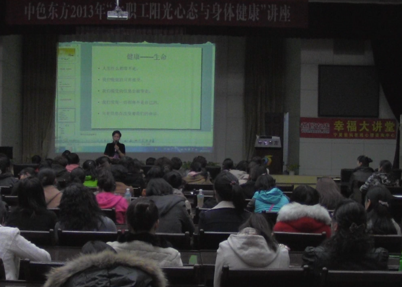 爸妈在线宁夏讯 2013年10月29日,宁夏心理咨询中心主任王纪风老师应邀,带领中心成员一行来到宁夏中色东方钽业有限公司,为企业女职工做《阳光心态—身心健康》专题讲座。