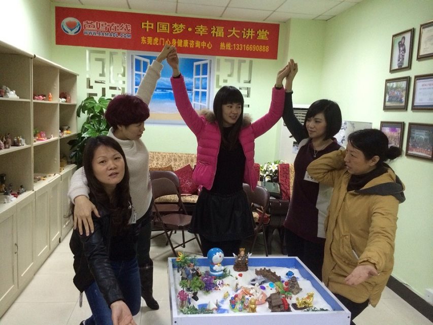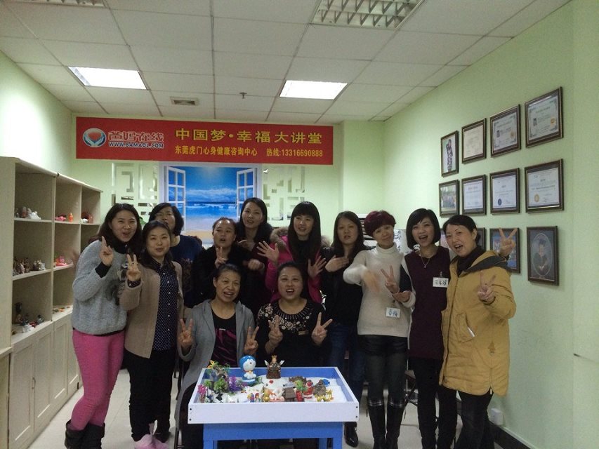 由爸妈在线虎门心身健康咨询中心举办的虎门第一期沙盘游戏国证课程圆满结束。