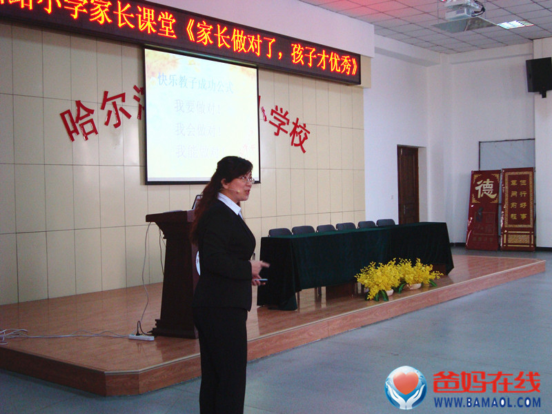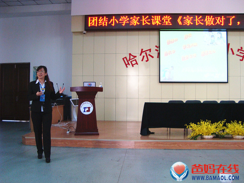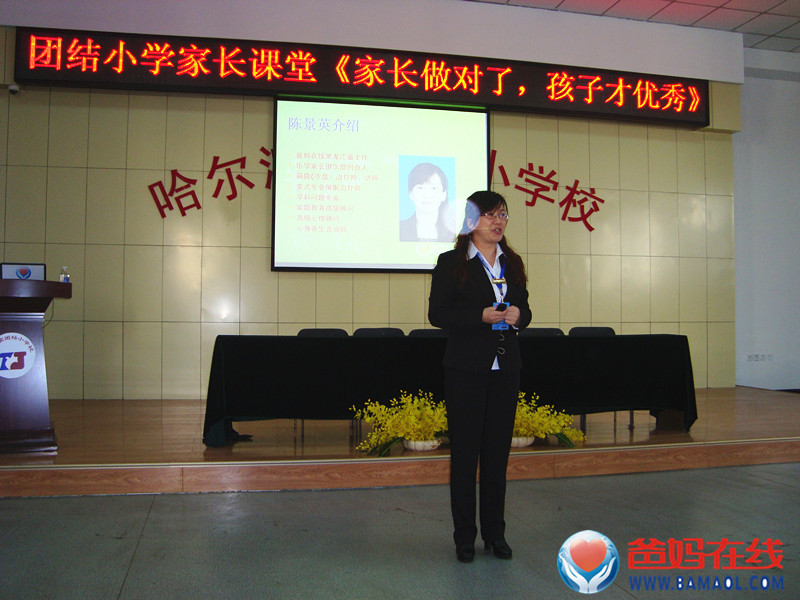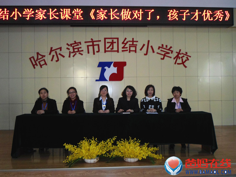 2014年3月21日下午14:30,爸妈在线黑龙江省心身健康咨询中心主任陈景英老师,受哈尔滨市团结小学的邀请,带领中心副主任和几位心理顾问学员,为学校四年级家长做了题为《家长做对了,孩子才优秀》的公益讲座。