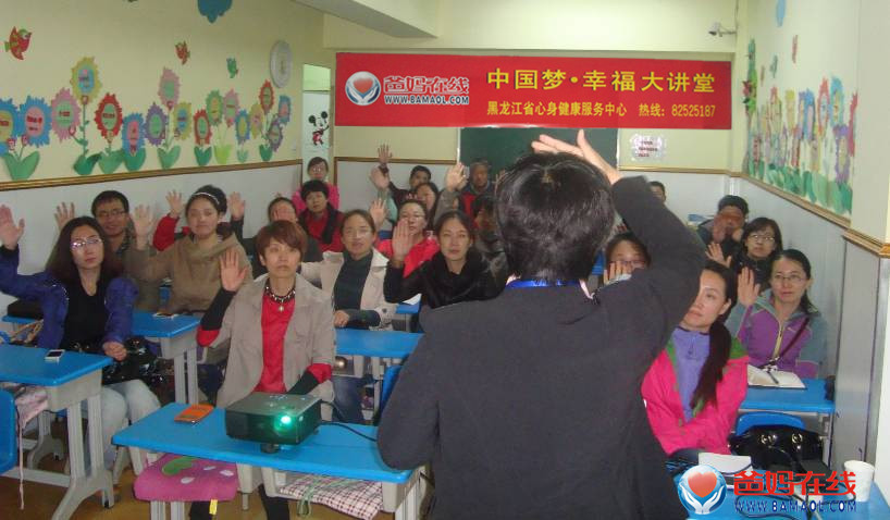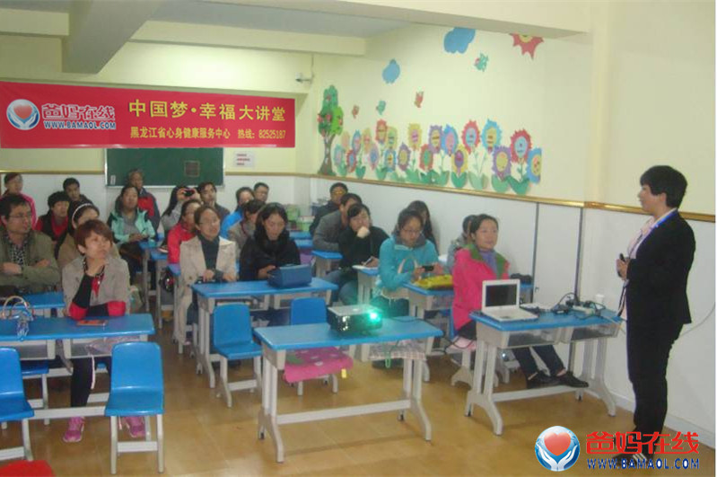 2014年5月5、6、7、8四天下午4:00——5:00,爸妈在线黑龙江省心身健康服务中心主任陈景英、副主任朱洪艳两位老师分别为哈尔滨天赐宝幼儿园四卡龄幼儿家长做了四场公益讲座。共有近100位家长聆听了讲座,讲座现场气氛热烈,家长们积极参与、讨论热烈,讲座反馈良好。讲座结束后,家长们仍意犹未尽,不愿离开,希望幼儿园以后能多举办这样的讲座,让更多的家庭和孩子受益。